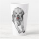 Reiche Graustufen-Schattierung umrahmt ein ernstes Gesicht, das von einer plötzlichen roten Zunge gebrochen wird - gleicht treuen und schelenden Teilen. Ein spielerischer Start in den kürbisgewürzten Morgen.