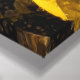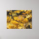 Ein nah-up-Schuss fängt gelbe Blätter in klarem Wasser. Das Sonnenlicht kreiert schimmernde Muster auf den Blätter und das dunkle Flussbett unten. Die Blätter variieren in Gelb- und hellbraunen Farbtönen, einige zeigen Anzeichen eines Verfalls. Das Wasser ist klar genug, um die Kiesel und den Schutt unten zu sehen. Die Stimmung ist insgesamt ruhig und herbst.