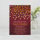Diese rustikale und grunge Hochzeitseinladung bietet goldene Blätter auf einem rot bedrückten Hintergrund. Der Text verbindet kursiv und serifenlos Schriftart für ein modernes und stilvolles Aussehen. Dies wird perfekt für die Herbstsonntage Hochzeiten im Herbst sein.