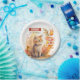 Niedliche Geburtstag Party Papierteller mit einer Katze feiert Herbst. Für Herbst-geborene Kinder. Passen Sie dieses Produkt an, indem Sie Ihre Party-Informationen hinzufügen.