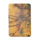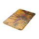 In einem lebhaften, gelben Ahorn sitzt ein männlicher Kardinal und behalte auf dem nahegelegenen Vogelfeeder über seinen Partner.