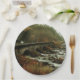 Papier Teller mit einem Naturfoto. Moody und schöne Landschaft. Eine abgeschiedene Steinbrücke an einem lebendigen Fluss mit einem Wald und Bergen rund um die Gegend.