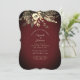 Aquarellfarbene Blumenelemente, die mit Sepia-Ton behandelt werden, Set über eine reiche burgundische Leinwand, mit Elfenbeinkalligraphie..die Namen der Braut und des Bräutigams hervorheben, wobei alle weiteren Veranstaltungsdetails in kleineren, eleganten Schriftart präsentiert werden. Das Ergebnis ist ein Design-Array, das sowohl für lässige als auch für formale Hochzeitsmotive geeignet ist. Pair mit passenden Produkten für eine komplette Hochzeitssuite.