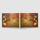 Dieses Gästebuch zu rustikalen Hochzeitsfeiern zeigt das Bild eines friedlichen, mit Bäumen gesäumten Wanderweges, der in atemberaubenden Herbstfarben in Gold- und Rottönen glänzt - mit halbdurchsichtigen Blätter in Form von Ahornblättern am rechten Rand - von katz_d_zynes