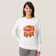 Gemütliches Herbstbild mit kühnen Buchstaben, bunten Herbstlauben und einem skurrilen Pilzakzent. Ideal für Tasse und Sweatshirts.