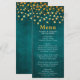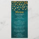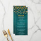 Dieses rustikale und grunge Hochzeitsmenü bietet goldene Blätter auf einem aquamarinen, blau gestörten Hintergrund. Der Text verbindet kursiv und serifenlos Schriftart für ein modernes und stilvolles Aussehen. Dies wird perfekt für die Herbstsonntage Hochzeiten im Herbst sein.