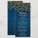 Dieses rustikale und grunge Hochzeitsmenü bietet goldene Blätter auf einem blauen Hintergrund. Der Text verbindet kursiv und serifenlos Schriftart für ein modernes und stilvolles Aussehen. Dies wird perfekt für die Herbstsonntage Hochzeiten im Herbst sein.