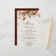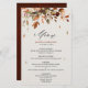 Elegantes rustikales Landmenü mit braunen, roten, orangefarbenen, grünen Eukalyptus-Blätter zur Hochzeit im Herbst. Bitte kontaktieren Sie mich für Hilfe bei der Anpassung oder wenn Sie ein anderes Produkt mit diesem Design benötigen.