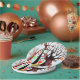 Dieses Bild ist als Herbsttag konzipiert, an dem der Schnee nachlässt. Die Bäume verlieren ihre Blätter, und die Truthühner sitzen auf ihrem Gemüse und ihren Früchten. Diese Teller sind in 2 verschiedenen Größen erhältlich.
