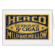 Herco-Zigarre ist ein Vintages Tabaketikett aus dem 19. Jahrhundert. Ein dunkelblauer Hintergrund mit den Worten Herco The World's Best 5 Cigar Mild and Mellow. Es wurde ein leichtes Bedrängen hinzugefügt.