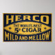 Herco-Zigarre ist ein Vintages Tabaketikett aus dem 19. Jahrhundert. Ein dunkelblauer Hintergrund mit den Worten Herco The World's Best 5 Cigar Mild and Mellow.
