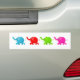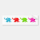 Niedliche Cartoonillustration von vier verschiedenen farbigen Dschungelelefanten, die in eine Reihe marschieren. Bild verfügbar auf verschiedenen Geschenken und Produkten.