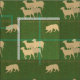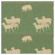 Dieses Herdendesign zeigt die Silhouette einer Border Collie Herding Schafe Silhouetten vor einem Hintergrund von verschiedenen Tönen Grün.