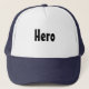 Hero Text Name mit weißem und Navy Color Trucker Hat oder Caps. Sie können den Namen des Texts bearbeiten oder ändern.