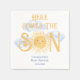 These baby shower paper napkins feature the text "Here Comes The Son" in yellow typography with a cute yellow watercolor sun.