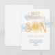 Diese süße Karte für die Dankeskarte zur Babyparty für einen Jungen enthält den Text "Here Comes The Son" in gelber Retro-Typografie mit einer lächelnden Wasserfarbe-Sonne. Einfach anpassbar. Original-Wasserfarbe © Michele Davies.
