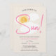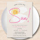 This adorable baby shower invitation features "Here Comes the Sun" in pink modern script calligraphy and showcases watercolor sunshine and clouds. Perfect for a baby girl's baby shower. Original Watercolor © Michele Davies.