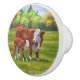 Hereford Cow & Niedlich Calf im Sommer Weide Keramikknauf
