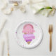 These cute birthday party paper plates feature a pink color ice cream cone illustration with polka dots background. Personalize the birthday party paper plate by adding your child's name, age, and party details.