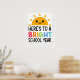 A cheerful and motivational design featuring the phrase “HERE’S TO A BRIGHT SCHOOL YEAR” with a radiant yellow sun beaming at the top. Each letter in “BRIGHT” pops in a different vivid color—red, orange, yellow, green, blue, and cyan—bringing joyful energy and a sense of inclusiveness. The bold, playful typography and warm visual elements create an uplifting tone, making this customizable design ideal for classroom decor, welcome banners, or educational materials that aim to start the school year with optimism and enthusiasm.