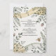 The layout features watercolor-inspired leaves and gentle hand-drawn–inspired detailing, framed with soft brushstrokes of gold and cream. Elegant yet natural, this design suits rustic, garden, and countryside weddings where nature’s beauty sets the tone. The subtle bee accent symbolizes creativity, connection, and harmony — a charming detail for a couple who values meaning and artistry.