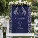 This design features navy blue heritage crest, delicate monogram initials, elegant script typography, a subtle luxury linen texture, with a detailed botanical leaf engraving pattern in silver on the backside of the card. Perfect for classic, royal-themed, old-money, and formal black-tie weddings. This product can be easily personalized. If you need help with the customization of the product or need matching products kindly please contact me via Zazzle.