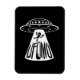 Vector Cartoon Illustration eines UFO entführt eine Person, denkt, Außerirdischen rocken mit UFOMG-Text. Tags: UFO, OMG, nicht identifiziert, fliegen, Objekt, oh, mein, Gott, Raum, Raumschiff, Alien, Martian, Cartoon, Teufel, Hörner, Entführung, vierten, Art, Spaß, Untertasse
