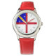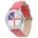 Kinderuhr aus Edelstahl mit rotem Lederarmband