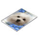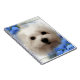 Eigenschaften dieses Produktes Hermes, ein süßer kleiner maltesischer Hund. Sein Porträt wird in einem widergespiegelten Rahmen enthalten, der durch hübsche Bluebells umgeben wird.