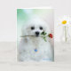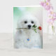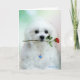 Dieses ist mein niedlicher kleiner maltesischer Welpen-Hund Hermes, der eine Rote Rose hält und Liebe für Ihren Geburtstag sendet!
