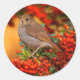 Hermit Thrush Songbird am Scarlet Firethorn Runder Aufkleber