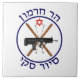 Obwohl nicht allgemein bekannt, verfügt Israel über ein Skigebiet im äußersten Norden, auf dem Berg Hermon im Golan. Da nur wenige Kilometer von der Waffenruhe entfernt sind, in der Syrien verletzte Skifahrer finden kann, ist das nicht das gravierendste Problem, das sich stellen kann. Das ist ein Galgen-Spaß-Logo für die Skipiste des Resorts. Die Helden überquerten die Skier, ein israelisches Gewehr Tavor und einen Magen David Adom (Roter Star von David), das Symbol des israelischen Notarzt, vergleichbar mit dem Roten Kreuz. Der hebräische Text oben lautet "Har Chermon" (Mt. Hermon). Der Text unten lautet "Siyur Ski" (Skipatrouille).