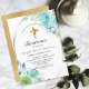 Celebra el bautizo de tu hijo con familiares y amigos y envía esta hermosa invitación floral azul con una cruz dorada. Las bonitas flores azules se complement un marco ovalado dorado. Es fácil personalizar con toda su información.