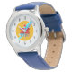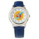 Kinderuhr aus Edelstahl mit blauem Lederarmband
