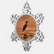 Dieses feine Kunstschneeflocken-Ornament präsentiert einen Großen Blauen Helden (Ardea herodias) in der Silhouette, Angeln in den flachen Gewässern des Cayuga Sees in Ithaca, NY, die eine der Finger Seen von upstate New York. Ein wunderschöner Sonnenuntergang in Orange, Gelb und Gold färbt die Wellen und Wellen in einem abstrakten Muster. Lieblich für die Weihnachtszeit oder zu jeder Jahreszeit.