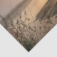 Golden getönter Himmel. Die Sonne ist vom Wasser aus mit Dunst bedeckt. Schöner Single-Vogel am Ufer.