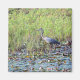 Ein Foto eines Großen Blauen Helden, der über einen Teich spaziert. Der Teich ist mit Seerosen bedeckt. Der Teich ist von grünen Pflanze umgeben. Image Copyright ©2021 Kimberly J Tilley.