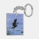 Ein Aquarellbild eines Großen Blauen Helden, silhouettiert auf dem Himmelsmond des Abends, schmückt diesen individuellen Schlüsselanhänger!