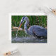 Ein großer blauer Heron, der ins Wasser spritzt, nachdem er gerade einen Fisch vermisst hat.