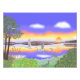 Moderne Kunst landschaftlich und bunt. Ein See, blauer und orangefarbener Himmel, niedrige Sonne, Spiegelungen im Wasser, und drei Helden. Foto druckt, Leinwand und Karten.