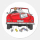Niedliche Cartoon-Grafik eines Vintagen Retroautos und Braut und Bräutigam in konvertierbaren wir verheiratete Aufkleber got.