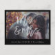 Diese Save the Date-Karte enthält einen halbtransparenten "Mr. & Mrs."-Text, der ein Foto überträgt, mit Ihren Namen und Ihrem Hochzeitstermin unten. Sie müssen wahrscheinlich auf "Klick um weitere Anpassungen" klicken, um den Abstand der Textfelder mit Ihren Namen zu verändern. Wenn Sie es vorziehen, dass der Ort dort ist, ersetzen Sie einfach "Save the Date" durch den Ort! Auf der Rückseite fügen Sie eine Nachricht wie Ihre Website und Ihre Rücksendeadresse.
