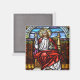 Magnet mit schöner Darstellung von Lord Jesus auf Thron Buntglas aus der Kathedrale Basilika von St. Joseph, San José, Kalifornien, USA.