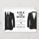 Lass allen wissen, dass Sie zwei haben sich auf einem Termin für Ihre Hochzeit mit dieser modernen-Karte mit zwei schwarzen Anzügen. Personalisieren Sie Ihre Namen, Datum und Hochzeitsort.