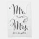 Dieses moderne Küchentuch verfügt über ein Skript Mr. & Mrs. Grafik und kann mit einem Namen angepasst werden.