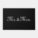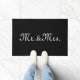 Herr & Mrs. schwarz und weiß, benutzerdefinierte Skripttext elegant chic Doormat. Anpassbarer weißer Text auf schlichtem schwarzem Hintergrund.