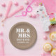 Herr & Mrs Typografie rustic Kraftzeitpapier verspätet. Dieses Hochzeitsdesign enthält den Text "Mr. & Mrs." in fett weißer Typografie mit einem goldenen Herz in der Periode Punkt.