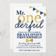 Die Einladung von Mr. Onederful Blue & Gold 1. Geburtstag ist der perfekte erste Geburtstag für seinen ersten Geburtstag.
