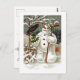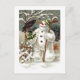 Dieses wunderschöne deutsche Postkartenbild illustriert eine Krähe, die einem Schneemann einen Besuch abstattete, der von der Winterlandschaft umgeben ist. Die Einfachheit und die Farben ergeben ein wunderschönes Bild. Es ist perfekt für alle Ihre Weihnachts- und Urlaubswünsche.