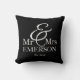 Fügen Sie Nachname und "hergestelltes" oder Hochzeitsdatum der Front dieses Schwarzweiss-"Herrn u. Frau" dekoratives Kissen hinzu.